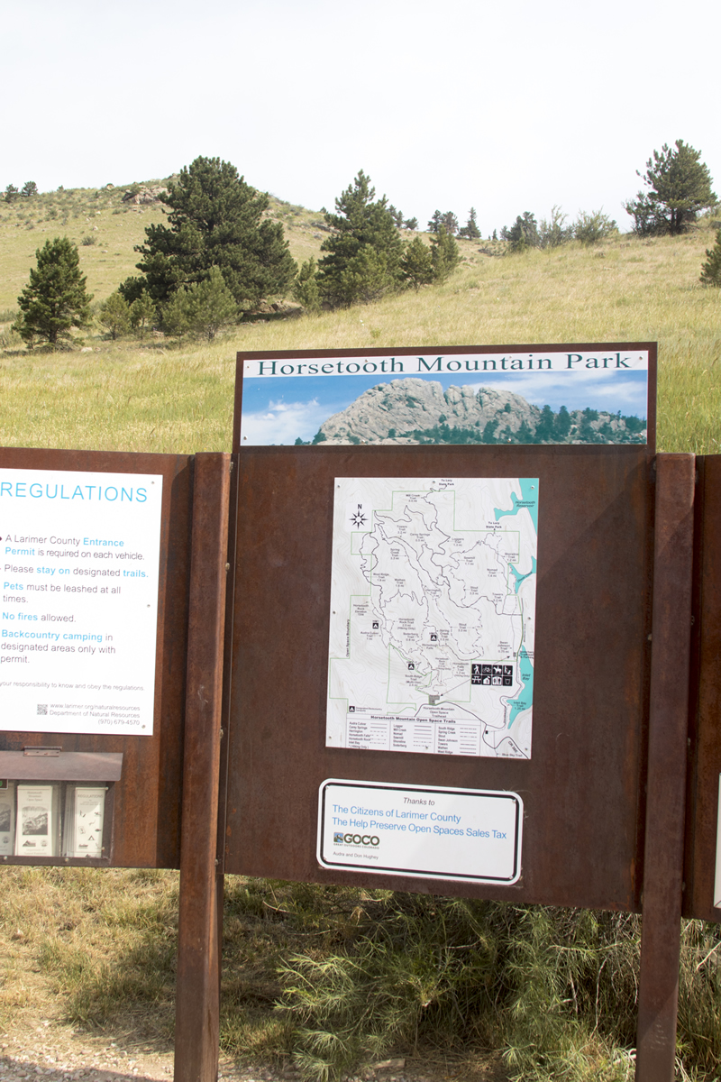We choose Horsetooth Falls Loop Trail which is about 2.9 miles. The hike starts up above the reservoir a the base of Horsetooth Rock. There are multiple hikes, runs, and mountain biking trails that one can take from this point.